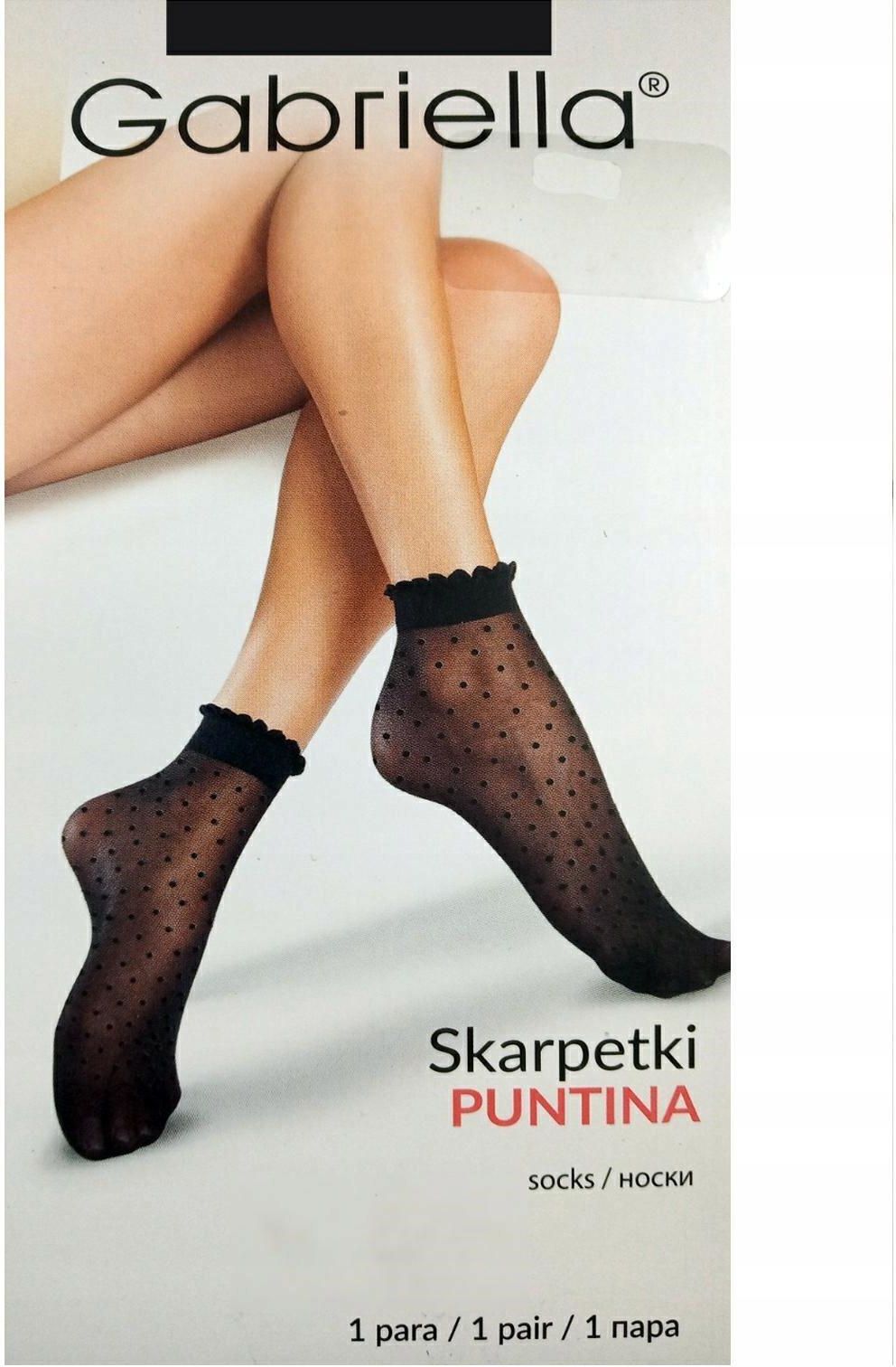 GABRIELLA PUNTINA Skarpetki dam. 20 DEN UNI / NERO Eleganckie skarpetki damskie ozdobione delikatnym wzorem w kropeczki. Transparentne, matowe, wykonane z najwyższej jakości przędzy typu LYCRA. Elastyczny, bezuciskowy ściągacz imitujący koronkę nie tylko utrzymuje damskie skarpetki na właściwym miejscu, ale także pięknie prezentuje się na nodze. Niewidocznie wzmocniona część palcowa i brak zaznaczonej pięty pozwala nosić skarpetki z dowolnym obuwiem. Rozmiar uniwersalny. W opakowaniu 1 para. Grubość 20 DEN. Skład: 85% poliamid, 15% elastan. Polecamy nasze pozostałe ogłoszenia! Wszystkie nasze produkty są nowe z oficjalnego kanału dystrybucji producenta. Oryginalnie zapakowanych produktów nie otwieramy, nie weryfikujemy poprawności kompletacji towaru przez producenta. Staramy się, aby byli Państwo maksymalnie zadowoleni zarówno z produktów jak i z poziomu obsługi. Nasze przesyłki pakowane są w foliopaki - jeśli chcesz otrzymać idealne, nienaruszone podczas transportu opakowanie wybierz opcje dodatkową - "Pakowanie na prezent". Zapewni to radość z opakowania nieuszkodzonego przez kuriera.