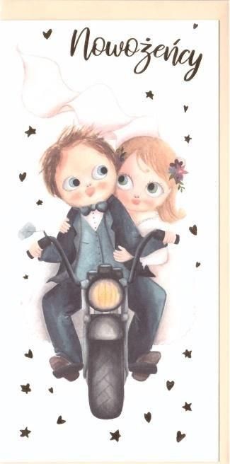 Unikalny Karnet Ślubny o Rozmiarze B6 z Motywem Motocyklowym DL Ten wyjątkowy karnet ślubny z serii DL wyróżnia się swoim nietypowym i oryginalnym motywem. Projekt ten jest dreszczem emocji dla każdego młodego pary, jednocześnie celebrującemp niepowtarzalny charakter miłości i przygody.Koncepcja tego karnetu jest zainspirowana motocyklem, co wyróżnia go na tle innych, typowych kart ślubnych. Na wierzchu znajduje się grafika dwóch przemierzających drogę za pomocą motocykla - idealne odzwierciedlenie uczucia wolności, jakie przynosi małżeństwo.Format B6 to kompaktowy, ale jednocześnie przestronny rozmiar, który pozwala na wpisanie obszernych i szczerych życzeń dla nowożeńców. Ten unikalny karnet zdobi błyszczące srebrne elementy, które podkreślają jego wyjątkowość i elegancję.Cechy produktu:- Motyw motocyklowy: Niepowtarzalny design, który wyróżnia go na tle innych inwencji. Idealny dla pary, która ceni sobie oryginalność i przekraczanie tradycji.- Format B6: Optymalny rozmiar, który pozwala na wpisanie szczegółowych życzeń, nie rezygnując jednocześnie z kompaktowości.- Perłowe wykończenie: Nadaje karnetowi nutę ekstrawagancji i elegancji.Romantyczny, pełen miłości i szczęścia - ten karnet ślubny na pewno zostanie na długo zapamiętany przez parę młodą i będą stanowić wyjątkowy element ich romantycznego dnia. EAN: 5907465661836