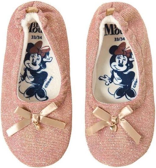 Kapcie dla dziewczynki: - wsuwane - licencja: Myszka Minnie Materiał i technologie: - materiał zewnętrzny - 100% poliester - lureksowa, błyszcząca nitka - podszewka - 100% poliester - wkładka - 100% poliester - podeszwa - 100% poliester