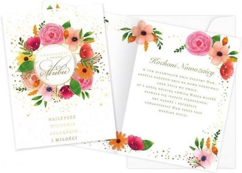 Karnet V-045 Ślub EAN: 5901924483380 Typ publikacji: artykuł szkolno-biurowy SID: 3262284 Karnet V-045 Ślub W powiększonym tzw. Angielskim formacie 140x190 mm. Wykonana z niezwykłą dbałością o szczegóły, zdobiona złotą, matową folią oraz lakierem UV dla podkreślenia wyjątkowości i elegancji. Wewnątrz znajduje się tekst życzeń, a całość uzupełnia dedykowana biała koperta. okazja: Ślub