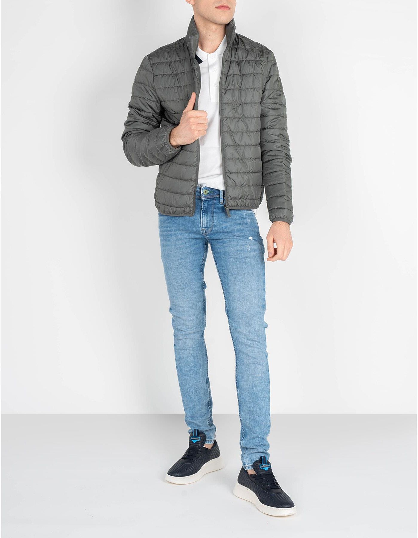 Prosty fason Na stójce Zapinana na dwukierunkowy zamek błyskawiczny Pikowana, z przeszyciami W kołnierzu schowany kaptur Z przodu dwie zapinane kieszenie Na lewym ramieniu firmowa naszywka Dół oraz rękawy wykończone gumkami Delikatnie ocieplona sztucznym puchem Wykonana z wysokiej jakości materiału pochodzącego z recyklingu