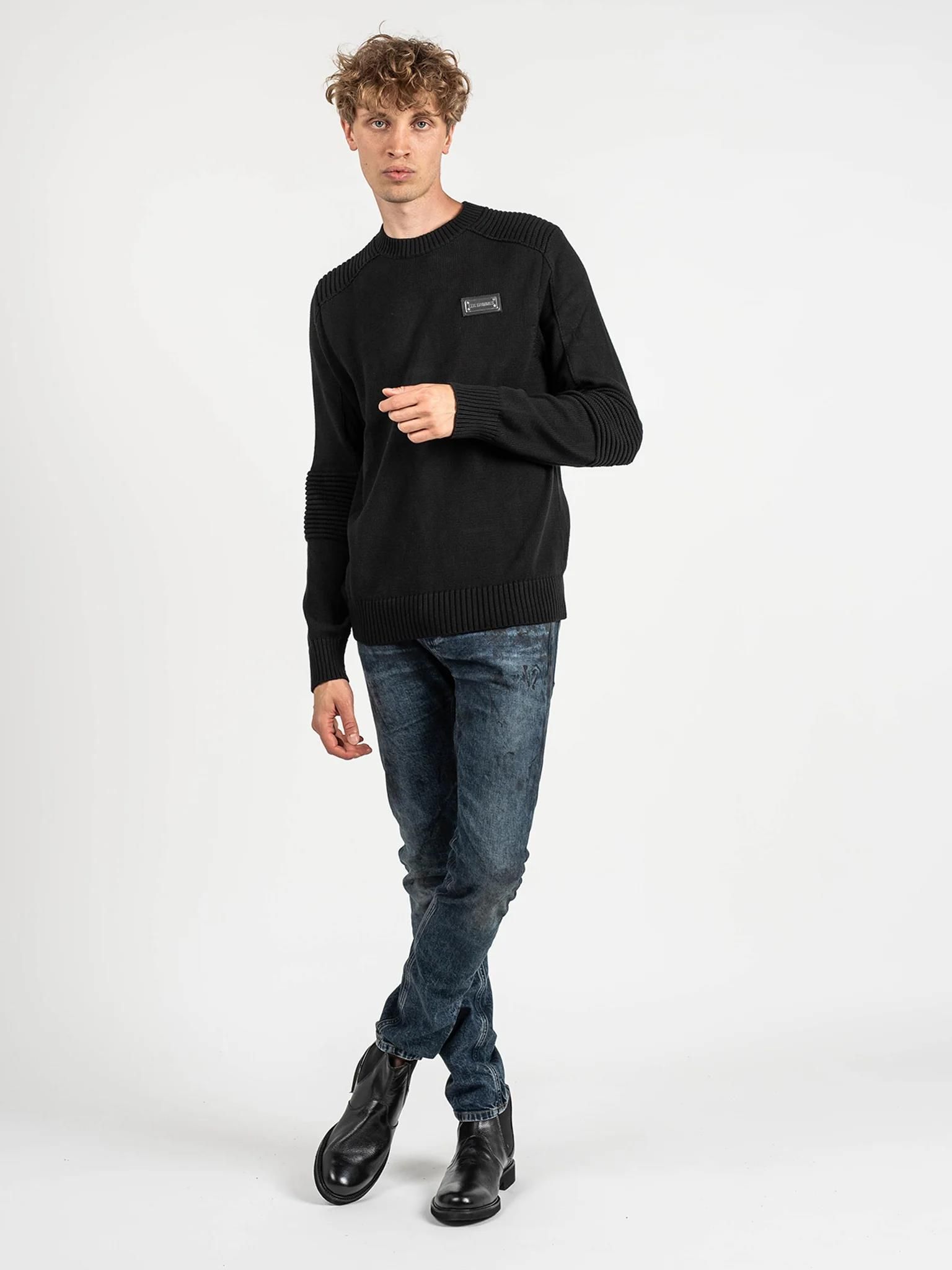 Prosty fason Dekolt okrągły Dekolt, rękawy oraz dół zakończone ściągaczem Z lewej strony firmowy detal Metalowe elementy w srebrnym kolorze Wykonany z wysokiej jakości bawełny Wyprodukowano we Włoszech