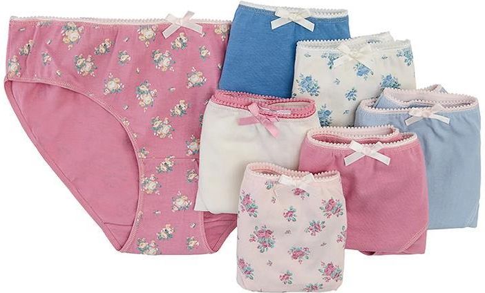 Majtki dla dziewczynki: - w zestawie: 5 szt. - kolor: różowy, biały, niebieski - wzory: kwiatki, gładkie - doszyta kokardka z przodu - fason: figi - ozdobna gumka w pasie Materiał i technologie: - 95% bawełna, 5% elastan (gramatura: 160 g/m2) - certyfikat Oeko-Tex Standard 100 Pranie i pielęgnacja: - Prać z podobnymi kolorami w temperaturze do 40° C. - Prać i prasować po lewej stronie.