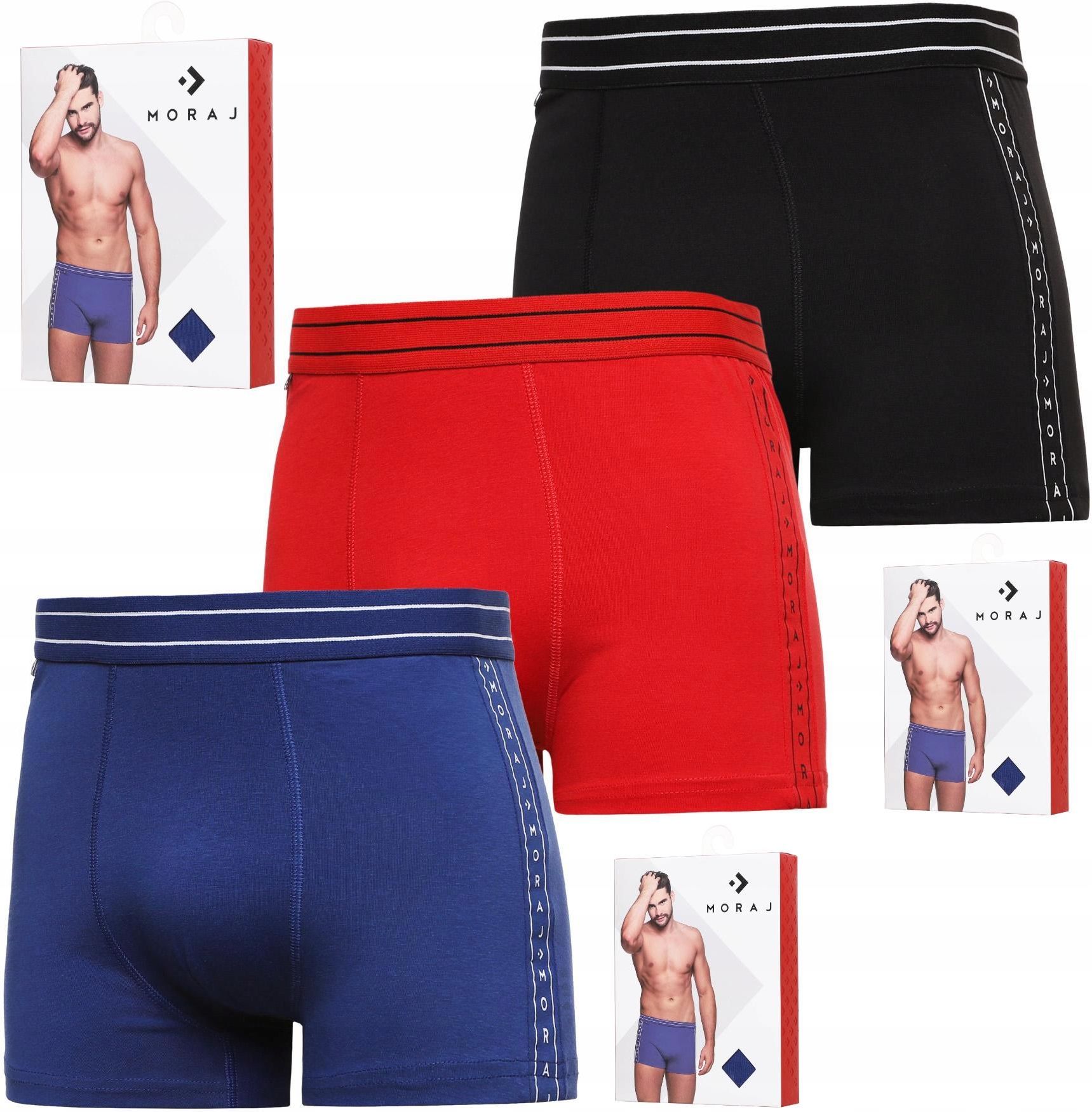 Moraj Bokserki Męskie Bawełniane Gładkie Klasyczne Kolorowe Zestaw 3-Pak M Mosina