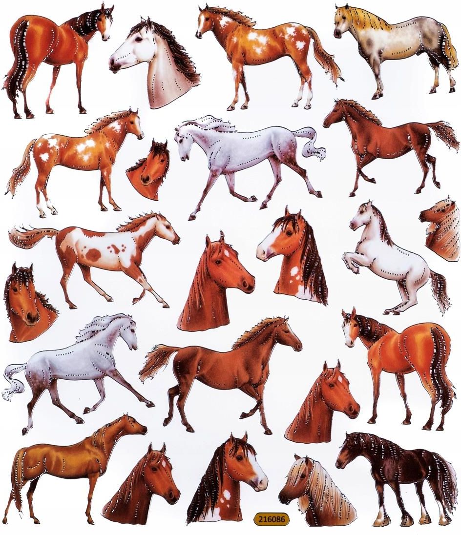 naklejki ozdobne - konie - firmy dpCraft Naklejki z motywem koni, które pięknie mienią się na różne kolory dzięki opalizującemu brokatowi.Wspaniały dodatek do kartek okolicznościowych, dzienników, notatników, zakładek oraz wszelkiego rodzaju kreatywnej twórczości dzieci. Cechy towaru: wielkość arkusza: 15 x 17 cm, materiał: papier z powierzchnią klejącą, liczba naklejek w opakowaniu: 23 szt.