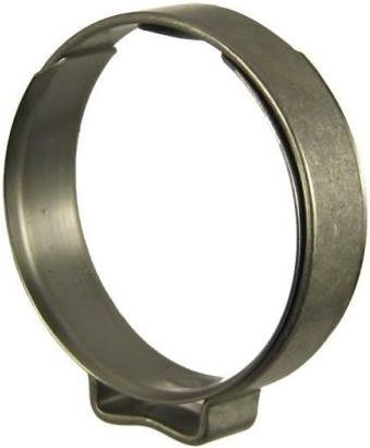 Obejma zaciskowa OETIKER 8.7, rozmiar 7,0 - 8,2 mm Opaski takie są idealnym rozwiązaniem w trudnych zastosowaniach obejmujących łączenie miękkich lub twardych gum oraz tworzyw sztucznych. Wkładka o cienkich ścianach w kształcie pierścienia (do 0,3mm grubości) z owalnym wybrzuszeniem, które wchodzi w ucho opaski, wypełnia szczelinę ucha zapewniając niemal doskonale równomierne ściskanie wokół całego obwodu opaski. Ucha opasek należy zamykać zalecaną, równomierną siłą (metoda nazywana priorytetem siły). Metoda ta pozwala na uzyskanie stałego i powtarzalnego nacisku na opaskę, nie powodując nadmiernego ściskania ani opaski, ani łączonych elementów. Średnicę nominalną opaski należy dobierać tak, aby po zaciśnięciu prawidłową siłą na elemencie ucha były prawie całkowicie zamknięte. Opaska: Stal nierdzewna, materiał nr 1.4307/UNS S30403Wkładka: Stal nierdzewna, materiał nr 1.4310/UNS S30100