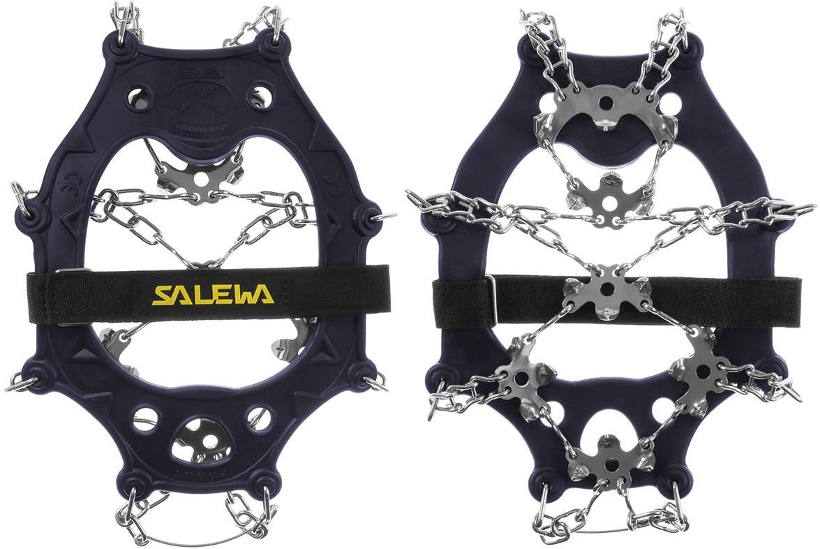 Wyprodukowane przez firmę Salewa raczki turystyczne zapewniające przyczepność na lodzie i zmrożonym śniegu. Raczki Mountain Spike idealnie sprawdzą się podczas wypraw w terenie górskim w okresie jesienno-zimowym, a także na co dzień np. na oblodzonej ulicy czy chodniku. Model Mountain Spike został zaprojektowany w taki sposób, żeby pasował do każdego typu obuwia. Raczki wyprodukowano ze stali nierdzewnej i termoplastycznego tworzywa sztucznego TPU, dzięki czemu są trwałe i bardzo wytrzymałe. Wyposażone zostały w 18 długich zębów zapewniających dobrą przyczepność na zmrożonym śniegu i lodzie. Obręcz i zęby łączy system łańcuchów ze stali nierdzewnej. Model Mountain Spike cechuje łatwe i szybkie zakładanie oraz ściąganie z butów. W zestawie znajduje się pokrowiec, który pozwala na bezpieczne przenoszenie i przechowywanie raczków. Dane techniczne Kolor: czarny i srebrny Materiał: stal nierdzewna, TPU Liczba zębów: 18 Producent: Salewa, Włochy