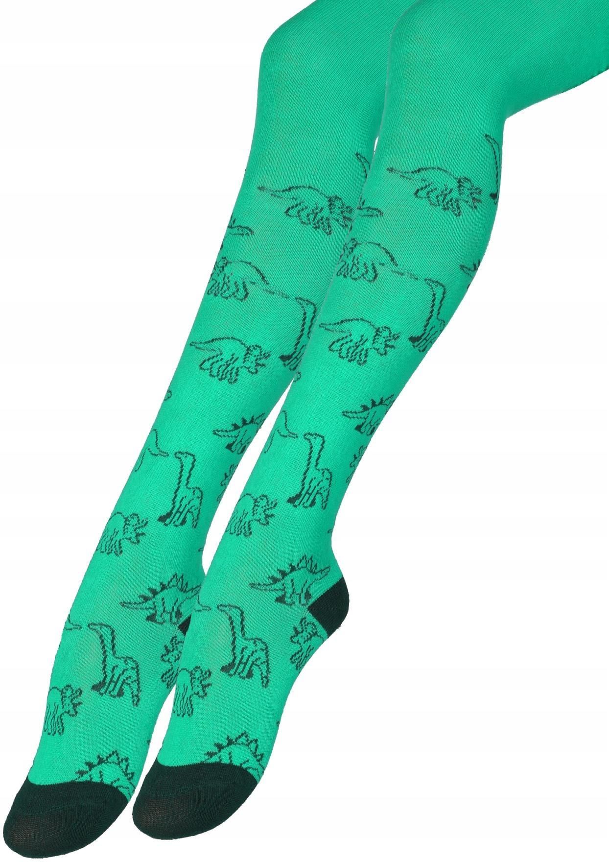 Rajstopy Bawełniane Dziecięce Zielone w Dinozaury MORAJ 80-86 Mosina