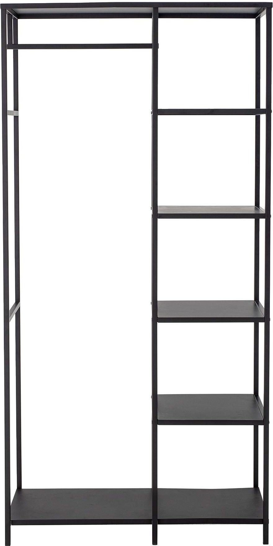 Minimalizm i prostota a jednocześnie funkcjonalność i ponadczasowość. Tak właśnie można opisać regał Valde marki Bloomingville. Prosta forma i klasyczna kolorystyka pozwalają umieścić regał dosłownie w każdym wnętrzu, a przy tym umożliwiają wyeksponować ważne dla nas przedmioty. Regał June został wykonany z metalu i pomalowano go na czarno. Regał Vlade posiada drążek na ubrania i 5 stałych półek na np. buty, złożone ubrania lub akcesoria. Wszystkie warianty łączy duża powierzchnia przechowywania i ciekawy design ułożenia półek. Mebel może posłużyć jako miejsce do przechowywania ubrań, książek, drobiazgów w sypialni czy garderobie.