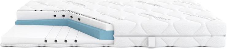 Materac SOSNA charakteryzuje się niezwykłą konstrukcją trzech ciętych trapezowo pianek. Tego typu budowa oraz połączenie surowców o różnych właściwościach zapewnia zróżnicowanie stref twardości, a tym samym komfort i optymalne dopasowanie do sylwetki. Zaletą materaca są aż cztery strefy komfortu. Rdzeń stanowi warstwa pianki podstawowej, niezwykle elastyczna i wytrzymała. Podobnie jak pianka wysokoelastyczna, która ją okala, zapewnia świetną wentylację i ma właściwości antyalergiczne. Wysokość rdzenia materaca to 20 cm, a całość, wraz z pokrowcem jest wysoka na 23,5 cm. Twardość powierzchni spania oceniono na stopień H2/H3. WKŁAD MATERACA3 pianki trapezowe: HR ( gęstość 35 kg/m3) /PU ( gęstość 28 kg/m3) /HR( gęstość 35 kg/m3)PIANKA POLIURETANOWAZastosowana po obu zewnętrznych stronach wkładu pianka poliuretanowa charakteryzuje się sprężystością i jest niesłychanie wytrzymała, nie ulega również odkształceniom. Pianka gwarantuje izolację termiczną, a dzięki pęcherzykom powietrza wewnątrz swej struktury, cechuje się świetną cyrkulacją powietrza, co jest niezwykle istotne zwłaszcza dla alergików i astmatyków.PIANKA WYSOKOELASTYCZNA HRCharakterystyczną cechą pianki wysokoelastycznej jest gładka faktura oraz nieregularność struktury, co wyróżnia ją od pozostałych pianek. Maksymalizuje to komfort użytkowania, ulepsza podtrzymanie ciała. Pianka HR jest niebywale elastyczna i tym samym zwiększa również trwałość materaca.POKROWIEC COOL SENSITIVEPokrowiec COOL SENSITIVE stworzono ze zmodyfikowanej przędzy nylonowej, która w procesie produkcji została poddana obróbce termicznej. Dzięki temu uzyskano pokrowiec, który wpływa korzystnie na cyrkulację powietrza i daje poczucie chłodu. Struktura użytej tkaniny nadaje objętości, a także zapewnia poczucie miękkości i komfort powierzchni spania. Surowiec ten posiada również certyfikat Oeko-Tex. Jednocześnie istnieje możliwość wielokrotnego prania produktu w temperaturze 60 stopni, bez obawy o jego uszkodzenie.