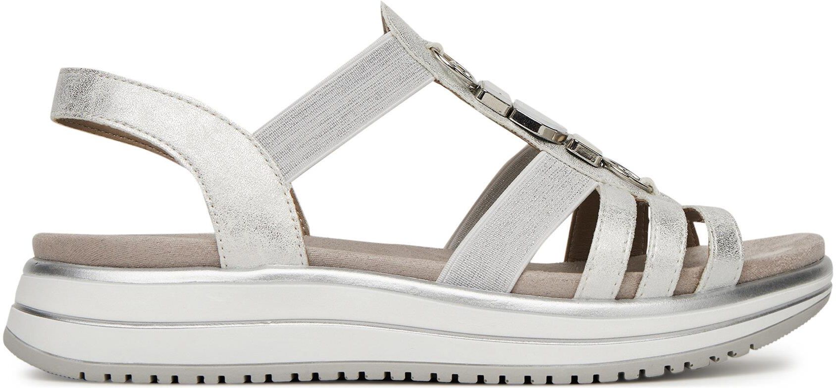 Sandały marki Remonte w eleganckim srebrnym kolorze to połączenie wyjątkowego komfortu i blasku, który doda klasy każdej letniej stylizacji. Wykonane z wysokogatunkowego tworzywa syntetycznego, gwarantują trwałość i lekkość, co sprawia, że są idealnym wyborem na ciepłe dni. Zapięcie na sprzączkę pozwala na idealne dopasowanie butów do stopy, a brokatowe ozdoby dodają im wyjątkowego, glamour charakteru. Dzięki technologii Remonte Soft, każdy krok jest miękki i komfortowy. Te sandały to must-have dla każdej kobiety, ceniącej styl i wygodę! Marka Remonte to szwajcarska firma obuwnicza, w której ofercie znajdziemy botki, półbuty i sandały damskie wykonane z iście szwajcarską precyzją. Marka stawia na ponadczasowe fasony w nowoczesnym wydaniu, dlatego w większości modeli wykorzystuje materiały wysokiej jakości, jak skóra naturalna, które poza atrakcyjnym designem, oferują też trwałość i wytrzymałość. Buty Remonte projektowane są z myślą o tych osobach, które cenią sobie komfort i wygodę. Są lekkie, elastyczne, a ich konstrukcja pozwala chodzić w nich przez cały dzień bez uczucia zmęczenia. Poznaj ofertę marki Remonte w CCC!