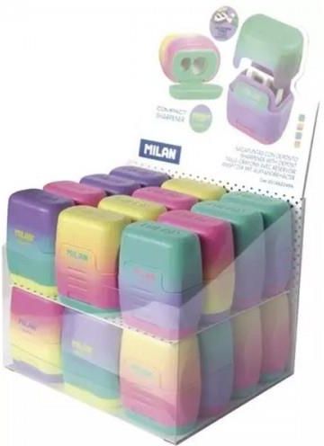 Opakowanie zbiorcze 24 sztuki. Temperówki z kolekcji SUNSET na cienkie i grube ołówki i kredki z pojemnikiem na ścinki. Mają ostre i wytrzymałe ostrza ze stali węglowej dzięki czemu idealnie nadają się do wszystkich rodzajów ołówków. Posiadają system bezpiecznych ostrzy, który zapobiega odłączeniu się ostrza od korpusu temperówki. Idealne do użytku szkolnego. Dostępne w 4 kolorach: żółtym, fioletowym, różowym i turkusowym. Oryginalny produkt stworzony przez własny dział badawczo-rozwojowy MILAN. Rozmiar temperówki: 4,8 x 3,9 x 2,5 cm. . Wymiary: 105x132 mm Opakowanie: pudełko