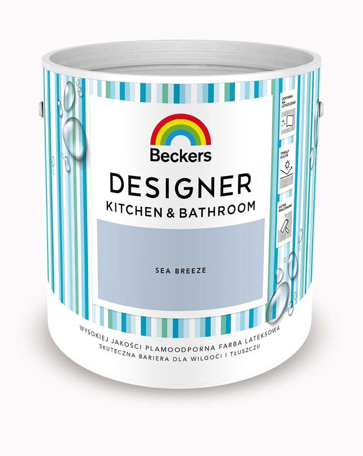 Beckers Designer Kitchen&Bathroom kuchnia łazienka Sea Breeze mat 2,5l Opis produktu BECKERS DESIGNER KITCHEN & BATHROOM to wysokiej jakości, wodorozcieńczalna farba lateksowa, szczególnie polecana do stosowania w pomieszczeniach narażonych na rozwój grzybówpleśniowych, działanie wilgoci …