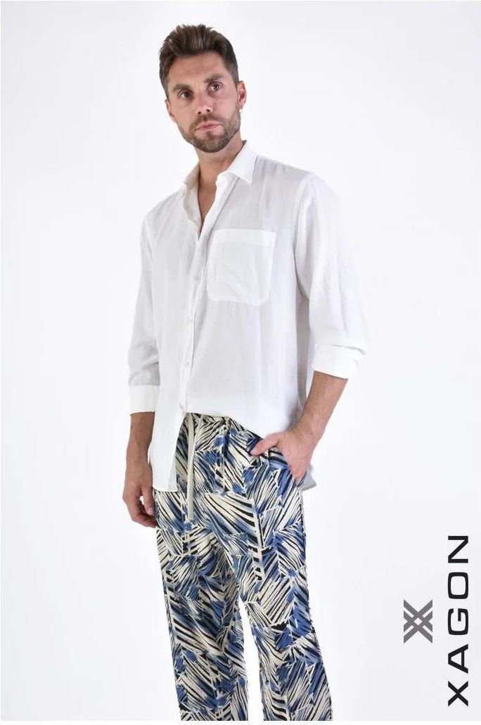 Prosty fason Ten prosty fason idealnie sprawdza się zarówno w codziennych, jak i bardziej formalnych stylizacjach, dodając elegancji i klasy każdemu, kto go nosi. Z kołnierzykiem Z kołnierzykiem, który dodaje szczyptę wyrafinowania i sprawia, że całość wygląda bardziej elegancko, jednocześnie zachowując komfort noszenia. Mankiety zapinane na guziki Mankiety zapinane na guziki to praktyczne rozwiązanie, które umożliwia łatwe dostosowanie szerokości rękawów do indywidualnych potrzeb, zapewniając wygodę przez cały dzień. Z lewej strony kieszeń Z lewej strony kieszeń dodaje funkcjonalności i stylu, pozwalając na przechowywanie drobnych przedmiotów, takich jak telefon czy długopis, w zasięgu ręki. Wykonana z wysokiej jakości tkaniny z dodatkiem lnu Wykonana z wysokiej jakości tkaniny z dodatkiem lnu, zapewnia nie tylko wyjątkową trwałość, ale także przewiewność i komfort noszenia, idealne na ciepłe dni.