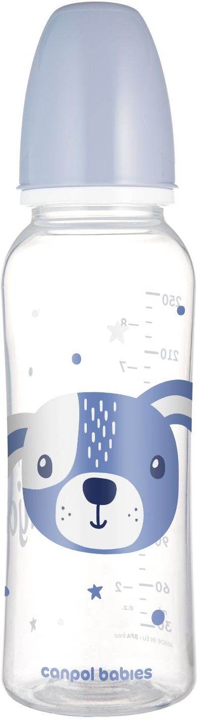 CANPOL 11/841 Butelka standardowa 250ml CUTE ANIMALS niebieska 5910808 Butelka wąska Canpol babies 250 ml CUTE ANIMALS została wykonana z nowoczesnego, nietłukącego się i bezpiecznego materiału. Jest lekka, trwała i całkowicie transparentna. Czytelna i precyzyjna skala umożliwia kontrolowanie ilości zjadanej przez dziecko. Miękki i bezpieczny smoczek silikonowy jest bezsmakowy i bezzapachowy - ułatwia akceptację butelki przez dziecko. Butelka Canpol wąska 250 ml CUTE ANIMALS jest kompatybilna ze wszystkimi laktatorami Canpol babies. Brak konieczności przelewania odciągniętego pokarmu do specjalnych woreczków gwarantuje, że nie zmarnuje się cenne mleko mamy i sprawia, że będzie mniej zmywania. Canpol butelka 250 ml CUTE ANIMALS została zaprojektowana i wyprodukowana w Polsce z zachowaniem najwyższych standardów jakości i bezpieczeństwa. Nie zawiera BPA. Canpol butelka wąska 250 ml jest częścią uroczej kolekcji Cute Animals - sprawdź pozostałe akcesoria z kolekcji.