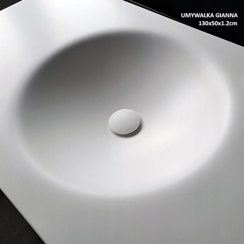 Nowoczesny blat łazienkowy zintegrowany z umywalką – produkt premium na wymiar, idealnie dopasowany i z szybkim terminem realizacji. Możliwość wykonania w innym wymiarze. Dane techniczne: materiał: kompozytowy (solid surface) kolor: biały Hi-Macs Alpine White, wykończenie: półmat, krawędź blatu: R2 (możliwość zamiany na R3, R6.5 lub fazkę) wymiar umywalki: ~ średnica ~40cm, głębokość 10cm długość blatu: 130 cm szerokość blatu dostępna w wymiarze do 60cm grubość blatu: 1.2cm* W przypadku blatów o grubości 1.2cm zalecamy stosowanie pełnych wieńców górnych szafek. Obawiasz się błędu podczas składania zamówienia? Bez obaw! Po złożeniu i opłaceniu zamówienia otrzymasz potwierdzenie wraz z rysunkiem z naniesionymi wymiarami i prośbą o jego potwierdzenie. Dopiero po potwierdzeniu przez Ciebie zamówienia przystąpimy do jego realizacji :) Dlaczego warto kupić umywalkę kompozytową? Materiał kompozytowy jest materiałem nieporowatym - nie posiada porów, w których mogłyby gromadzić się bakterie czy brud. Jest materiałem jednorodnym w swojej strukturze co czyni go bardzo łatwym w pielęgnacji i czyszczeniu. Jest ciepły i przyjemny w dotyku, ponieważ przejmuje temperaturę otoczenia. Niska podatność na uszkodzenia. Dzięki obecności w składzie materiału kompozytowego żywicy akrylowej jest on bardziej elastyczny niż np. popularna w łazienkach ceramika, a przez to mniej podatnym na pęknięcia czy odpryski. Jest odnawialny (materiał kompozytowy można szlifować i regenerować) - to jedyny tego typu materiał! (W przypadku długoletniego, intensywnego użytkowania naturalnym zjawiskiem jest pojawienie się na powierzchni każdej umywalki delikatnych rys i zmatowień - umywalkę kompozytową można przeszlifować bardzo łatwo samodzielnie przy pomocy ogólnodostępnych zestawów regeneracyjnych). Jest niewrażliwa na większość środków chemicznych. Nie wymaga zaawansowanej pielęgnacji (do codziennego czyszczenia wystarczy woda i mleczko CIF (lub inne wybielające/ze szlifującymi drobinkami) Cechuje ją niepowtarzalny, nowoczesny design, Istnieje możliwość wykonania umywalki (jak również blatu, mebla itp.) w dowolnym wymiarze, kolorze i kształcie.