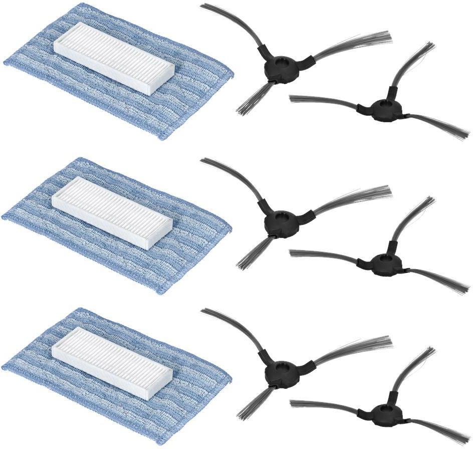 Zestaw akcesoriów do odkurzacza samojezdnego marki Bright. Zestaw zawiera ścierkę do mopa, filtr HEPA i dwie szczotki boczne.