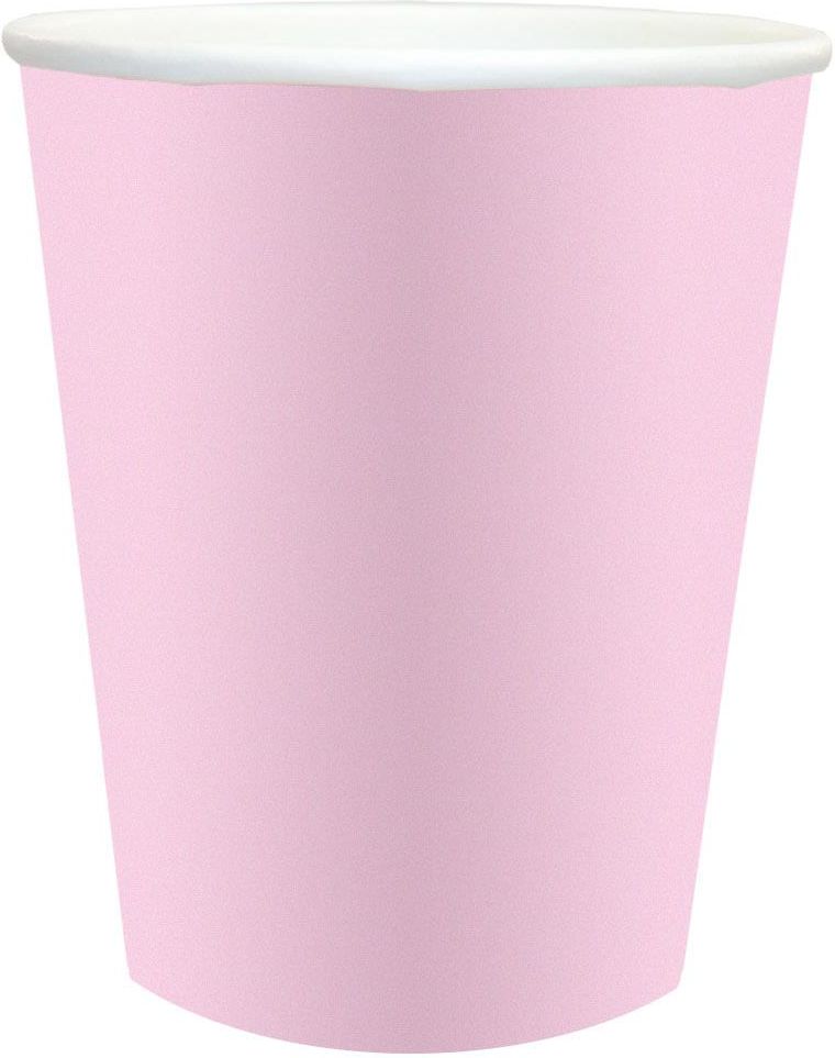 Kubeczki papierowe w kolorze różowym. Pojemność: 250 ml. Opakowanie: 6 szt.