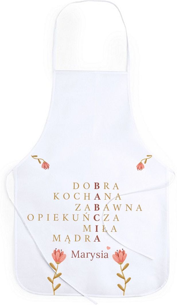 Eko fartuch personalizowany na dzień babci. Wykonany z tkaniny non-woven (polipropylen). Fartuch posiada sznurki do wiązania. Wymiary: 50 x 73 cm. Dane do personalizacji prosimy podać w notatce do zamówienia.