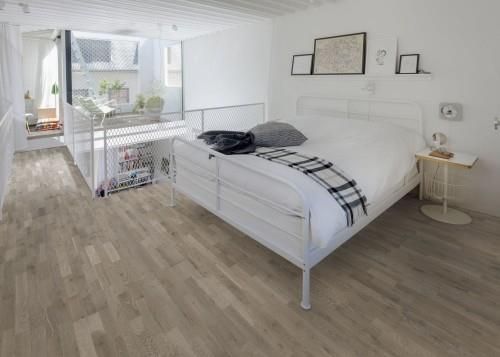 OPIS Sowo szare odcienie tej 3-lamelowej dębowej podłogi z kolekcji Harmony tworzą spokojną ekspresję, podkreśloną naturalnie występującymi wariacjami kolorystycznymi drewna. Każda deska jest starannie szczotkowana, aby wydobyć charakter słojów i podkreślić fakturę drewna. Matowe wykończenie …