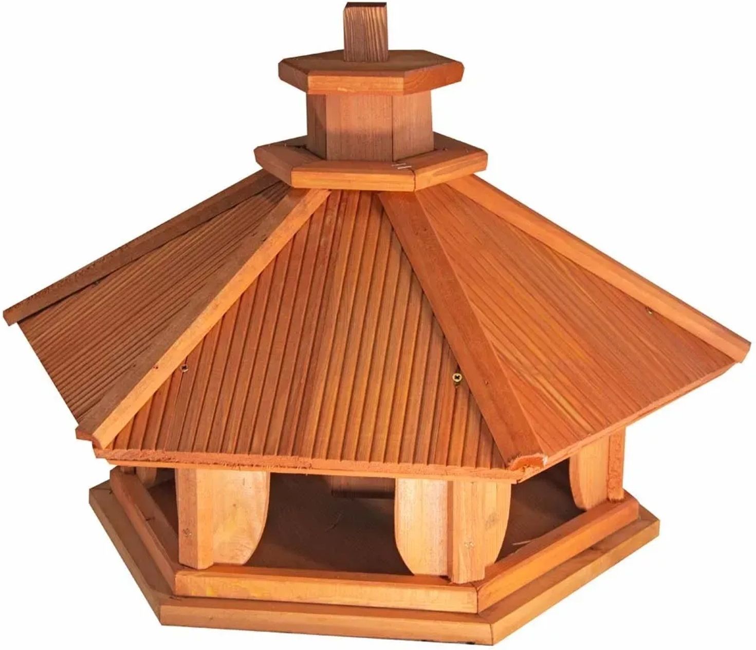 Karmnik dla ptaków Czajka Wyjątkowy karmnik, który został stworzony z najwyższej jakości drewna sosnowego . Jego solidność wykonania oraz połączenia za pomocą wytrzymałych wkrętów i zszywek gwarantują nie tylko trwałość, ale także niepowtarzalny charakter produktu. Górna część karmnika, którą można ściągać, ułatwia komfortowe wsypywanie ziaren, co sprawia, że dokarmianie ptaków jest dziecinnie proste. Karmnik jest dostarczany gotowy do postawienia. Dach w kształcie sześciokąta to wyjątkowy detal, który podkreśla elegancję karmnika. Przygotuj się na niezapomniane chwile w towarzystwie pięknych ptaków, które karmnik przyciągnie do Twojego ogrodu.