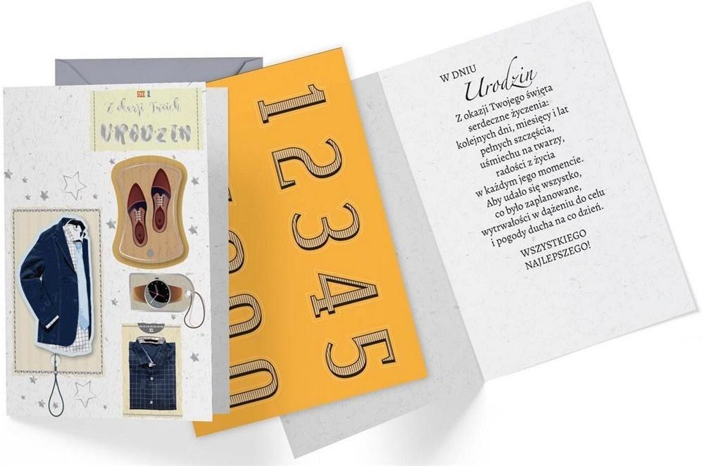 Karnet B6 DK-865 Urodziny męskie (wymienne cyfry) Producent: Kukartka Kod paskowy (EAN): 5901924475446 Kartka B6 z ozdobnej serii Dream Cards na Urodziny - nieduża, ale robi wrażenie dzięki atrakcyjnej kolorystyce i ciekawym zdobieniom. To idealny wybór łączący przyjazną cenę z jakością. Kartki z tej serii mają wyjątkowy dodatek - naklejki z cyferkami, z których można ułożyć dowolny wiek solenizanta. Cechy szczególne: wielkość: B6, 16.6 x 11.7 cm po złożeniu, koperta: w zestawie, kolorowa, zdobienia: (odstawniki, brokat itp.), okazja: Urodziny.