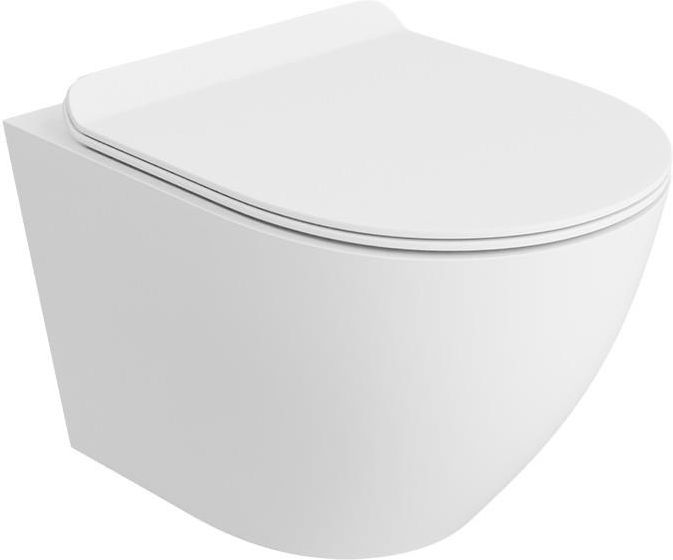 Miska WC wisząca z deską woloopadającą - LAVITA Sofi Slim White Mat Wymiary w mm (dł x szer x wys): 365x490x395 Bezrantowość: Tak Materiał deski: Duroplast Materiał zawiasów: Metalowe Rozstaw śrub mocujących w misce: 18 Deska wolnoopadająca: Tak Kolor deski: Biały Kolor miski: Biały mat Materiał miski: Ceramika Typ misy: Podwieszana Nowoczesny design - miska wisząca SOFI SLIM WHITE MAT Miska wisząca SOFI SLIM WHITE MAT to nowoczesne rozwiązanie, idealne do łazienek w stylu minimalistycznym i skandynawskim. Jej matowa biel oraz półokrągła forma, w połączeniu z deską w wersji slim, tworzą elegancki i nowoczesny wygląd. Taki design doskonale harmonizuje z dodatkami imitującymi surowe drewno lub kamień, nadając wnętrzu loftowego lub rustykalnego charakteru. Funkcjonalność miski WC SOFI SLIM WHITE MAT Miska wisząca SOFI SLIM WHITE MAT jest nie tylko estetyczna, ale także funkcjonalna. Jej montaż jest szybki i prosty, a ukrycie elementów instalacyjnych gwarantuje schludny wygląd łazienki. Model wyposażony jest w twardą deskę z duroplastu, która posiada funkcję wolnego opadania oraz możliwość szybkiego wypięcia zawiasów, co ułatwia czyszczenie.Wykonana z porcelany wypalanej w wysokiej temperaturze, miska jest odporna na zarysowania i odbarwienia, co zapewnia jej długotrwałą trwałość. System bezkołnierzowy RIM+ zapewnia skuteczne spłukiwanie i łatwe usuwanie zanieczyszczeń, co zwiększa komfort użytkowania i utrzymania higieny. WYMIARY PRODUKT W GALERII ZDJĘĆ PRZED ZAKUPEM UPEWNIJ SIĘ ŻE PRODUKT JEST DOSTĘPNY!