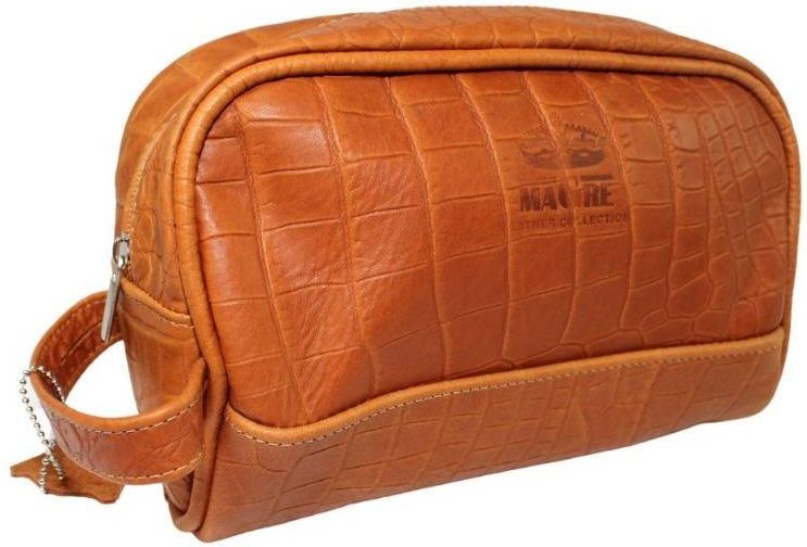 Magre Skórzana Kosmetyczka Prostokątna Skóra Naturalna Licowa Adrian Deluxe Karmelowy Tekstura 24x17x10 [cm] Mrocza