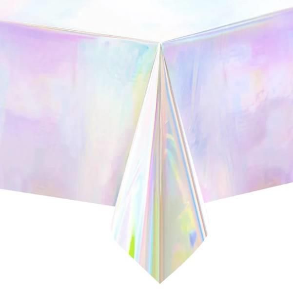 Obrus opalizujący srebrny 137x274cm Obrus foliowy jednorazowego użytku to holograficzny srebrny jednolity materiał. Idealny do użycia w okresie Bożego Narodzenia, sylwestrów, imprez urodzinowych i innych okazji. Wymiary obrusu to 137 cm x 274 cm, wystarczające aby zmieścić się na stole w większości przestrzeni kuchennych. Odkryj potęgę naszego obrusu foliowego do jednorazowego użytku i zaskocz swoich gości na twoich następnych wydarzeniach.