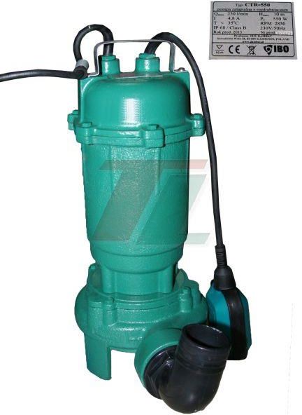 Pompa zatapialna CTR 550 IBO z rozdrabniaczem do ścieków i szamba CTR 550 IBO z rozdrabniaczem to agregat zasilany silnikiem jednofazowym (230V). Praca silnika o mocy 550W pozwala na podnoszenie wody na wysokość 12 m. Maksymalna wydajność agregatu wynosi 250 l/min, ale w głównej mierze zależy ona od długości i średnicy węży. Należy jednak pamiętać, że pompa powinna pracować w całkowitym zanurzeniu, ponieważ w innym przypadku może dojść do przegrzania silnika. Pompa wyposażona jest w pływak sterujący, dzięki któremu nie ma zagrożenia pracy na sucho (pływak po zakończeniu pracy opada i wyłącza urządzenie). Pompa została przystosowana do współpracy z wężami elastycznymi, dzięki odpowiednim zakończeniom króćców o średnicy 2” (50 mm). To urządzenie dobrej jakości w stosunkowo niskiej cenie. Posiada żeliwne wirniki rozdrabniające, co wydłuża jego żywotność, chroni przed korozją chemiczną oraz umożliwia pracę w niesprzyjających warunkach. Dodatkowym wyposażeniem urządzenia jest zabezpieczenie przeciążeniowe na kablu, które gwarantuje bezawaryjność pompy. Niewątpliwą zaletą urządzenia jest niski poziom hałasu w trakcie jego pracy, co uzyskano dzięki odpowiednio dobranym materiałom konstrukcyjnym. Ponadto pompa jest łatwa w instalacji i obsłudze. Zastosowanie Pompa zatapialna CTR 550 IBO, ze względu na dużą tolerancję nieczystości, znajduje swoje zastosowanie przy pompowaniu wody brudnej i zanieczyszczonej, szczególnie do przepompowywania ścieków, szamba i gnojówki. Maksymalna temperatura pompowanej cieczy nie powinna przekraczać 35°C. Stosowana jest również do różnego rodzaju odwodnień (np. w przypadku wystąpienia podtopień). Pompy typu CTR nie są przystosowane do pracy w zamkniętych obiegach wodnych (np. oczka wodne), gdzie istnieje możliwość powstania zawiesiny z drobnymi elementami szlifującymi, które mogą uszkodzić urządzenie. Parametry pompy Wydajność maksymalna [l/min] 250 Wysokość podnoszenia maksymalna [m] 10 Moc silnika znamionowa [kW] 0,55 Napięcie [V] 230 Króciec tłoczny DN50 (2") Wąż [mm] 50 Producent IBO Rozdrabniacz tak Wysokość [cm] 42 Szerokość [cm] 25 Waga [kg] 17 Warunki pracy: Maksymalna temperatura cieczy 40°C Maksymalna temperatura otoczenia 40°C Zabezpieczenie termiczne: tak Klasa izolacji B Tryb pracy – ciągły Bezpieczeństwo – IP68 PH wody: 5 - 9 Materiały: Obudowa silnika: żeliwo szare Korpus: żeliwo szare Wał i rotor: stal nierdzewna AISI 304 Wirnik: żeliwo szare Nóż tnący: żeliwo szare/stal nierdzewna AISI 304 Dławica mechaniczna: ceramika/grafit/NBR Prędkość obrotowa silnika: 2850RMP Długość przewodu: 10 m