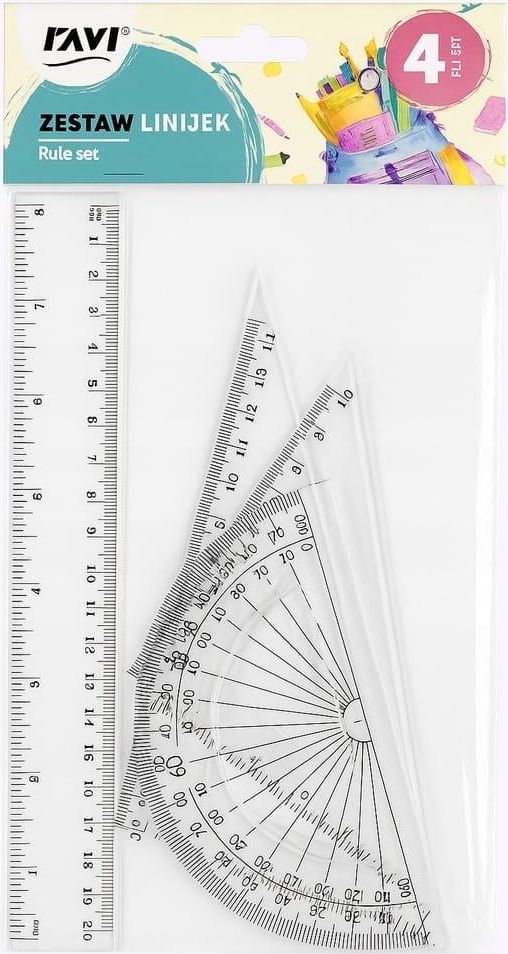 Ravi Zestaw Linijek 4 El. Linijka Kątomierz 2 Ekierki 14cm I 10 Cm Mrocza