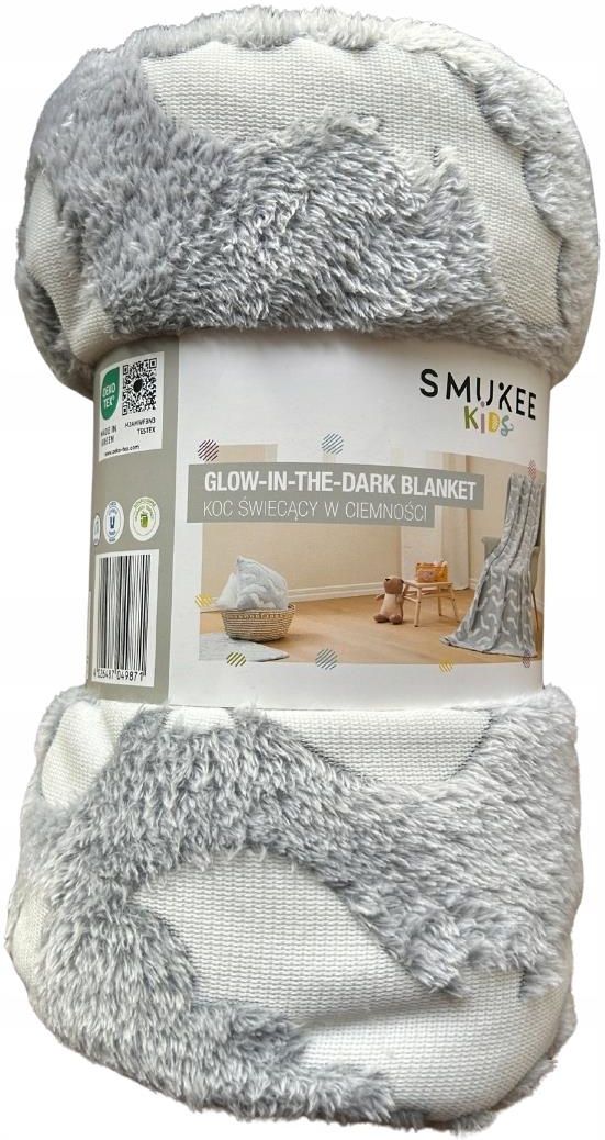 Mięciutki Kocyk świecący w ciemności Smukee - Nietoperze Rozmiar 130x170 cm Standard OEKO-TEX (bezpieczny produkt - więcej informacji na końcu oferty) Koc świecący w ciemności Smukee Rozmiar 130x170 cm efektowany - ozdobny wzór świeci w ciemności po wcześniejszej ekspozycji na światło koc jest bardzo miękki i przyjemny w dotyku, dzięki czemu delikatnie otula ciało podczas chłodniejszych dni mięciutki kocyk świetnie się sprawdzi na zimne wieczory w czasie oglądania filmów może być również wykorzystywany jako narzuta na łóżko w pokoju dziecięcym Standard OEKO-TEX Standard 100 to bardzo ważne oznaczenie, zwłaszcza jeśli zależy Ci na jakości i bezpieczeństwie produktów. Oeko-Tex® to międzynarodowy certyfikat potwierdzający, że dany produkt tekstylny został przebadany pod kątem obecności szkodliwych substancji. W praktyce oznacza to, że: materiał (np. tkanina, nici, nadruk, guziki) nie zawiera toksycznych chemikaliów, metali ciężkich, pestycydów ani formaldehydu, jest bezpieczny dla skóry, również dla dzieci i niemowląt. cały proces produkcji — od surowca po gotowy wyrób — spełnia ściśle określone normy ekologiczne i zdrowotne. Jeśli więc coś ma certyfikat OEKO-TEX, to znaczy, że produkt został dokładnie przebadany i jest wolny od substancji szkodliwych w ilościach mogących szkodzić zdrowiu człowieka.