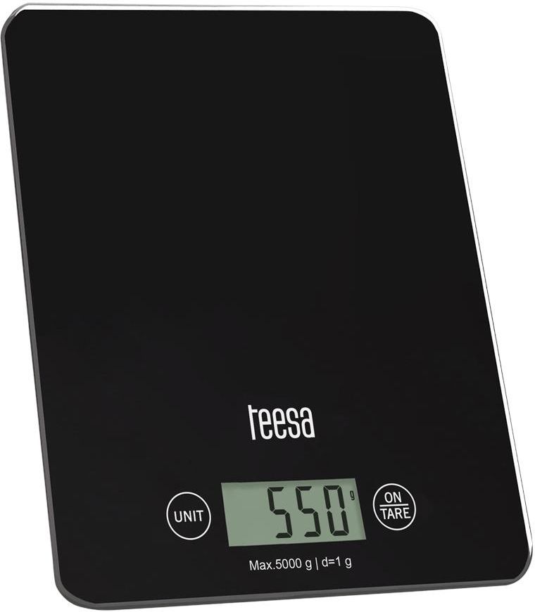 WAGA KUCHENNA ELEKTRONICZNA 5kg CZARNA - TEESA WAGA KUCHENNA TEESA TSA0804 CZARNA. Nowoczesny model wagi, urządzenie bez którego trudno wyobrazić sobie pracę w kuchni. Max. obciążenie to 5kg, posiada funkcję tarowania, która pozwoli na odmierzenie ciężaru samego produktu. Waga została wyposażona w czytelny wyświetlacz LCD, który wyświetli pomiary w jednej z czterech jednostek – gramach, mililitrach, funtach lub uncjach. Dodatkowo TSA0804 posiada antypoślizgowe stopki, które zapewnią właściwą stabilizację. Czarne hartowane szkło, z którego została wykonana platforma ważenia nie tylko gwarantuje niezwykłą wytrzymałość, ale również nadaje eleganckiego wyglądu – teraz waga kuchenna nie będzie tylko przyrządem pomiarowym, ale stanie się również gustownym dodatkiem do wystroju kuchni. Bdb jakość i solidność wykonania produktu, wytrzymała płyta pomiarowa z bezpiecznego szkła hartowanego Duży czytelny wyświetlacz Automatyczne wyłączenie auto off Dzięki niewielkiemu rozmiarowi waga jest wygodna w przechowywaniu Estetyka - nowoczesny design SPECYFIKACJA PRODUKTU Maksymalne obciążenie: 5 kg Minimalne obciążenie: 5 g Dokładność: 1 g Jednostki: g, oz, ml, lb Automatyczne wyłączanie: TAK (waga samoczynnie się wyłącza gdy nie jest używana) Funkcja tarowania: TAK Wyczerpanie baterii: TAK Przeładowanie: TAK Wyświetlacz cyfrowy LCD: TAK Powierzchnia ważenia: szkło hartowane Kolor: CZARNY Zasilanie: bateria CR2032 Wymiary: 16,5 x 20,5 x 2 cm (18 x 22 x 3 cm z opakowaniem) Waga: 468,9 g (576,6 g z opakowaniem) ARTYKUŁY AGD - OSPRZĘT DO KUCHNI - WAGI KUCHENNE PRODUCENT: TEESA
