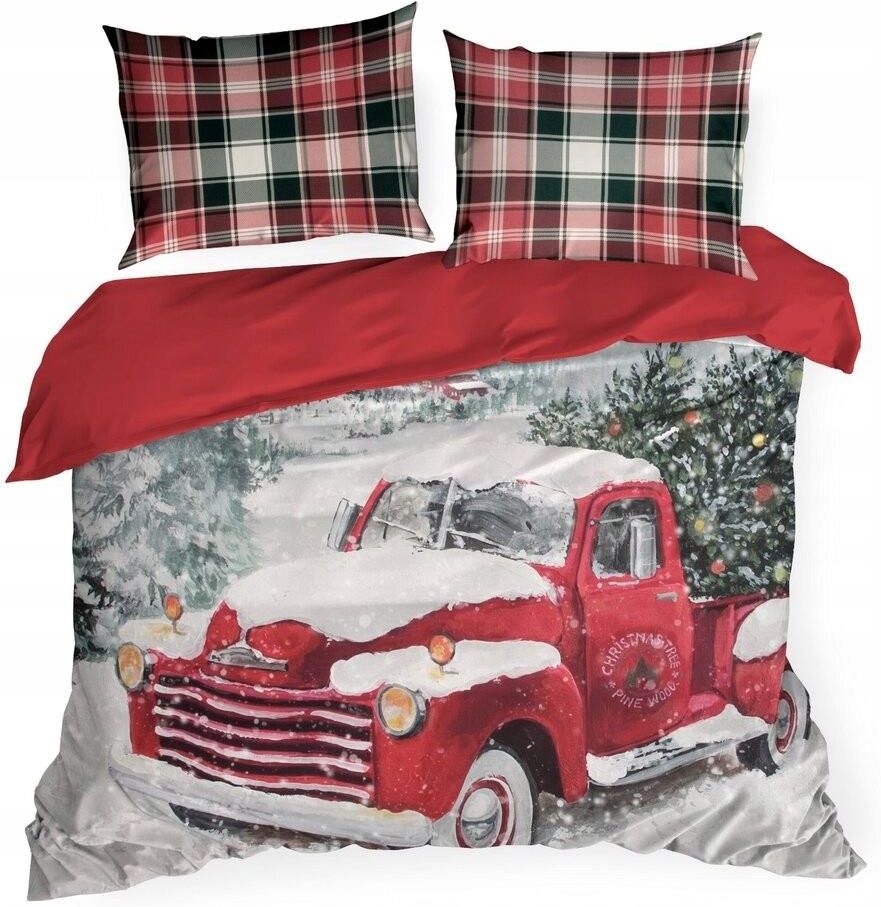 Eurofirany Pościel świąteczna Vinti 220x200 komplet zimowe auto z choinką bawełna (1770400548) Mrozy