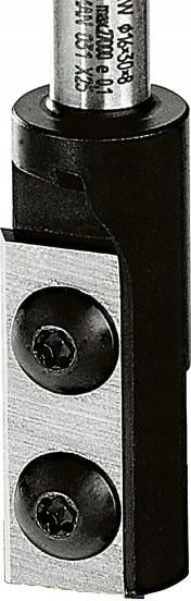 Węglikowy frez do wpustów z wymiennymi płytkami skrawającymi tnie zarówno od strony czołowej jak i z boku. Idealnie nadaje się do głębokich wpustów. Frezy z skrawającymi mają zasadnicze zalety w stosunku do narzędzi konwencjonalnych, zwłaszcza przy intensywnym użytkowaniu: brak konieczności ponownego ostrzenia, narzędzie zawsze gotowe do użycia i stała średnica.Zalety i korzyści Płyty wymienne umożliwiają pracę ze stałymi wymiarami frezu i dużą precyzją - optymalne przy zastosowaniu szablonów Nie jest wymagane ostrzenie, można stosować od razu ponownie Ostrze o długości 25 mm umożliwia również frezowanie głębszych rowków Łatwa wymiana Niezmienna średnica frezu w mm Zastosowania Frezowanie szablonów Wykonywanie wpustów w drewnie i materiałach drewnopochodnych Z płytką wymienną