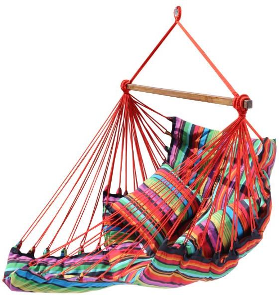 Fotel hamakowy szeroki z podstawką, czerwono-czarny HC-COMFY (Fotele hamakowe) Szeroki fotel hamakowy - jest wygodny nawet dla dwóch osób. Dodatkowo zawiera podstawkę pod stopy. Wykonany z ręcznie plecionego materiału z najwyższej jakości bawełny, wewnątrz zawiera wszytą poduszkę, jest więc bardzo wygodny. Sznurki podtrzymujące całą konstrukcję także są bawełniane i ręcznie plecione - są bardzo wytrzymałe, a przy tym delikatne w dotyku. Drążek wieńczący hamak wykonany jest ze specjalnie impregnowanegodrewna, zabezpieczonego przed działaniem czynników zewnętrznych. Maksymalne obciążenie hamaka wynosi 140kg. Długość od dołu do uchwytu mocującego - 180cm. Produkt wyróżniaja się wysoką jakością wykonania, która widoczna jest już na pierwszy rzut oka. Zastosowanie starannie dobranych materiałów oraz dbałość o każdy detal sprawiają, że łączy w sobie trwałość, estetykę i komfort użytkowania. Dzięki precyzyjnemu wykonaniu oraz solidnym wykończeniom, produkt zachowuje swój wygląd i funkcjonalność przez długi czas. Producent przykłada dużą wagę do jakości użytych tkanin, mocowań i szwów, co przekłada się na odporność na codzienne użytkowanie oraz czynniki zewnętrzne. Połączenie estetycznego wzornictwa z trwałością i wygodą sprawia, że asortyment spełnia oczekiwania nawet najbardziej wymagających użytkowników, ceniących sobie zarówno komfort, jak i solidne wykonanie.