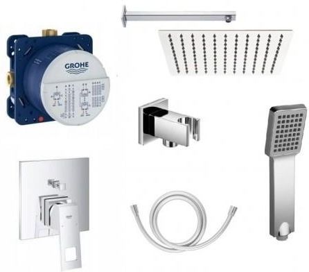 Zestaw natryskowy podtynkowy GROHE Eurocube 24062000, deszczownica Estiva 25 cm • Bateria podtynkowa do obsługi dwóch wyjść wody Grohe Eurocube 24062000• Uniwersalny element podtynkowy Grohe Rapido SMARTBOX 35600000• Rączka prysznicowa 1 - funkcyjna Omnires Angel ANGEL-RCR • Przyłącze kątowe …