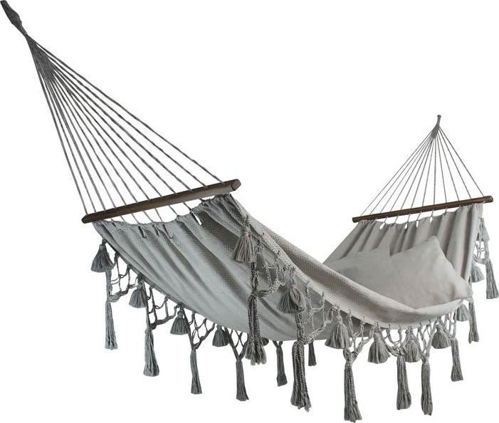 Hamak z drążkiem boho, kremowo-niebieski HSM (Hamaki z drążkiem) Hamak z drążkiem w kolorze jasnoszarym wykonany jest w 50% z jeansu oraz 50% z bawełny, jest więc wytrzymały i miły w dotyku. Komfort wypoczynku zwiększają drewniane, impregnowane drążki zamontowane na końcach tkaniny, chroniące przed zapadaniem się i zwijaniem materiału. Dzięki takiemu rozwiązaniu hamak świetnie sprawdzi się jako ławka na spotkaniach w ogrodzie. Oryginalne, fantazyjne frędzle w stylu boho wykonane z bawełny oraz stonowana kolorystyka sprawia, że hamak wkomponuje się w każdą aranżację pokoju czy ogrodu, będąc jego ozdobą i atrakcją. Produkt wyróżniaja się wysoką jakością wykonania, która widoczna jest już na pierwszy rzut oka. Zastosowanie starannie dobranych materiałów oraz dbałość o każdy detal sprawiają, że łączy w sobie trwałość, estetykę i komfort użytkowania. Dzięki precyzyjnemu wykonaniu oraz solidnym wykończeniom, produkt zachowuje swój wygląd i funkcjonalność przez długi czas. Producent przykłada dużą wagę do jakości użytych tkanin, mocowań i szwów, co przekłada się na odporność na codzienne użytkowanie oraz czynniki zewnętrzne. Połączenie estetycznego wzornictwa z trwałością i wygodą sprawia, że asortyment spełnia oczekiwania nawet najbardziej wymagających użytkowników, ceniących sobie zarówno komfort, jak i solidne wykonanie.