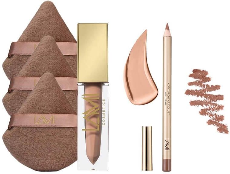 Lami Cosmetics Creamy Beige Set Zestaw Konturówka Kolor Karmel 1,4G + Pomadka (02) 5 Puszek Do Pudru 1 Szt X 3 Mrozy