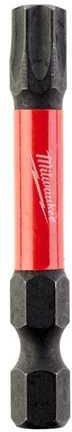JESZCZE WYŻSZA TRWAŁOŚĆ I LEPSZE DOPASOWANIE  BITY UDAROWE SHOCKWAVE™   Bity udarowe MILWAUKEE® SHOCKWAVE™ IMPACT DUTY to najtrwalsze bity na rynku zapewniające idealne dopasowanie. Hartowanie punktowe końcówki zapewnia większa odporność na zużycie i idealne dopasowanie do łba wkrętu. Unikalna strefa SHOCK ZONE® absorbuje udar i zapewnia do 30x dłuższą żywotność w porównaniu z innymi bitami udarowymi dostępnymi na rynku oraz jest w stanie przenieść aż do 3x większy moment skręcający. Specjalnie opracowany stop stali ALLOY76™ poddany dodatkowej obróbce termicznej zapewnia maksymalną odporność na uszkodzenia. Bity udarowe SHOCKWAVE™ gwarantują ekstremalną trwałość nawet przy najbardziej wymagających zastosowaniach. Shockwave TX40 x 50 mm - 1 pc Zaprojektowane do użytku z wkrętarkami udarowymi, akcesoria z linii Shockwave Impact Duty™ nie tylko są idealne do zastosowań przy dużych obciążeniach, ale także zapewniają kompletne rozwiązanie dla wszystkich użytkowników, którzy chcą wiercić i mocować. Geometria Shock Zone - zaprojektowana tak, by była elastyczna. Geometria Shock Zone zmniejsza naprężenie na ostrzu, dzięki czemu ono rzadziej łamie się. Połączenie konstrukcji Shock Zone oraz specjalnej obróbki cieplna pochłania udary i pozwala aby wiertło zginało się podobnie jak sprężyna. Kute i prasowane ostrze zapewnia najlepsze dopasowanie do łba śruby, bez przeskoku i zdzierania go, co wydłuża okres trwałości. Stal opracowana na życzenie - Milwaukee ® niestandardowy skład metalu sprawia, że wiertła Shockwave są bardziej odporne na wstrząsy przy uderzeniu. -----------------------------------
