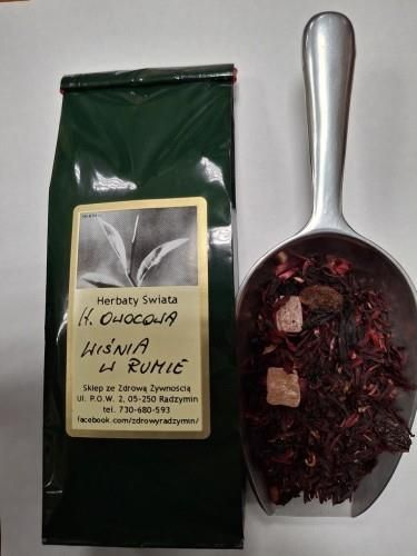 SIKKIM Herbata Owocowa Wiśnie w Rumie 100gHerbata o smaku wiśni w rumie z nutką amaretto. Kompozycję tworzą owoców wiśni, ananasa, owoc czarnego bzu, hibiskus i rodzynki.Kolory opakowania mogą być inne niż na zdjęciu.
