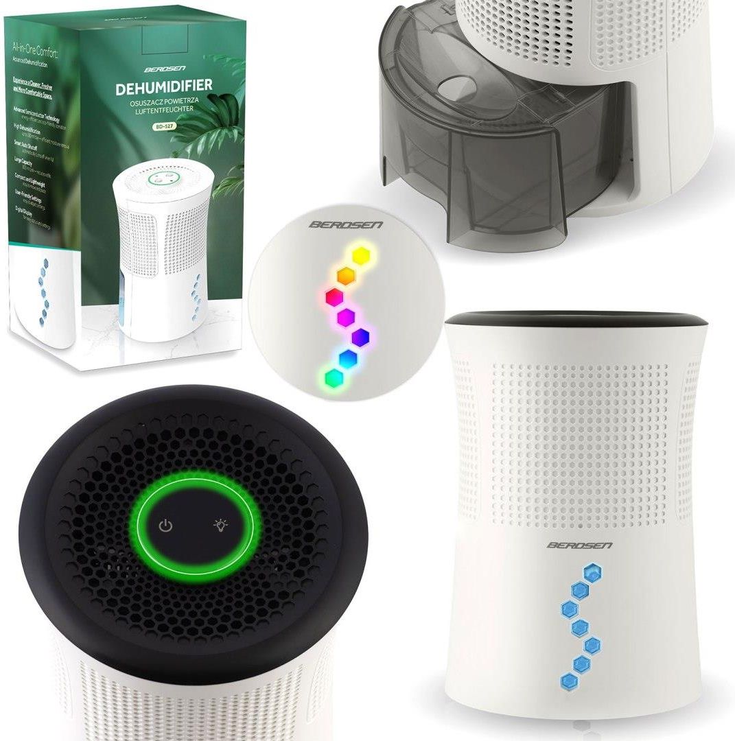 ULTRA CICHY Pochłaniacz wilgoci BD-527 Bardzo dobry osuszacz, w dobrej cenie Urządzenie skutecznie rozwiąże problem z nadmierną wilgocią i sprawi, że w pomieszczeniu zapanuje zdrowy klimat. cicha praca — maksymalnie 34 dB duży wyjmowany zbiornik na wodę - 700 ml wydajny i elegancki osuszacz cenionej i sprawdzonej marki Berdsen designerskie światło LED Super wydajność, niskie zużycie energii! ✅ Wygoda i efektywność skuteczny, energooszczędny — bardzo niskie rachunki, działanie na zasadzie technologii Peltiera, idealny do niewielkich pomieszczeń, nowoczesna technologia, która pozwala zaoszczędzić energię. Wspomaga skuteczny proces suszenia prania Skraca czas schnięcia ubrań – osuszacz intensywnie osusza powietrze, przyspieszając naturalny proces odparowywania wilgoci z prania. Zapobiega nadmiernej wilgoci w otoczeniu – skutecznie pochłania wilgoć, dzięki czemu ogranicza ryzyko powstawania pleśni, grzybów oraz nieprzyjemnych zapachów. Idealny dla domów bez suszarni. Skuteczna ochrona przed grzybami i bakteriami Wsparcie w walce z wilgocią – osuszacz ogranicza rozwój pleśni, grzybów i bakterii. Poprawa zdrowia – zmniejsza ryzyko alergii, infekcji i problemów z oddychaniem. Ochrona wnętrz – zapobiega plamom pleśni i niszczeniu ścian oraz mebli. Zadbaj o komfort i zdrowie swoich bliskich, eliminując wilgoć i jej szkodliwe skutki. Wspomaga skuteczny proces suszenia prania Skraca czas schnięcia ubrań – osuszacz intensywnie osusza powietrze, przyspieszając naturalny proces odparowywania wilgoci z prania. Zapobiega nadmiernej wilgoci w otoczeniu – skutecznie pochłania wilgoć, dzięki czemu ogranicza ryzyko powstawania pleśni, grzybów oraz nieprzyjemnych zapachów. Idealny dla domów bez suszarni. Wydajność Osuszacz powietrza BD-526 to kompaktowe, profesjonalne i funkcjonalne urządzenie pracujące z maksymalną wydajnością 300 ml/dobę. Pochłaniacz wilgoci BD-526 działa na zasadzie kondensacji, która skutecznie skrapla wilgoć zawartą w powietrzu. Dzięki temu niweluje natężenie grzybów, pleśniawek i nieprzyjemnych zapachów w pomieszczeniu, podwyższając jednocześnie Twój komfort. Nowoczesne, płynnie przechodzące światło LED! W trybie nocnym całkowite wygaszenie. Osuszacz posiada podświetlenie LED z trzema opcjami: płynna zmiana kolorów, stały kolor, wyłączenie światła. Dzięki temu można dopasować efekt do własnych preferencji. Dane techniczne marka: Berdsen, wysoka wydajność około 300 ml na dzień przy 30°C, 80% wilgotności względnej, termoelektryczny moduł Peltiera, pobór mocy 22,5 W, głośność max. 34 dB, zasilanie 220 - 240 V, pojemność zbiornika na wodę 700 ml, detektor poziomu wody — powiadomienie miganiem środowisko pracy ponad 15°C, ponad 40% wilgotności względnej. CICHA PRACA ✅ WSPOMAGA SUSZENIE PRANIA ✅ POMAGA W UTRZYMANIU ODPOWIEDNIEJ WILGOTNOŚCI W POMIESZCZENIACH ✅ ZDROWE POWIETRZE = ZDROWA CERA