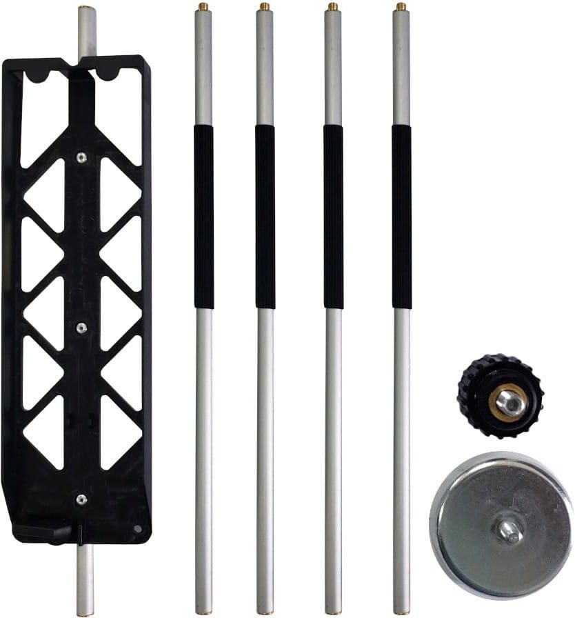 Opis Tyczka jest dodatkowym wyposażeniem do poziomicy wężowej szczególnie przydatny przy pomiarach na wysokości i głębokości. Pasuje do poziomicy Nivcomp H-25 Skręcana 4-elemantowa tyczka W skład zestawu wchodzi również uchwyt do aparatu, magnes przyczepny oraz gałka ochronna W dostawie Segmentowa tyczka aluminiowa i akcesoria NivComp NCNI0000-HS