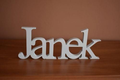 Cena za jedną literkę. Jeśli imię składa się z pięciu liter proszę zaznaczyć 5 szt. Napis wykonany z wysokiej jakości drewnopochodnego mdf o grubości 19 mm, pomalowany ekologiczną farbą akrylową. Wymiary napisu: Wysokość: 15 cm Szerokość: Zależy od ilości liter ( 5 liter to około 40 cm ) Grubość: 1,9 cm Dostępne kolory: Surowy, Biały, Czarny, Brązowy, Różowy, Błękitny, Szary, Niebieski, Czerwony, Pudrowy róż, Złoty, Srebrny Napis jest na tyle ciężki i gruby aby stał samodzielnie, możliwe jest także zawieszenie napisu na ścianie.