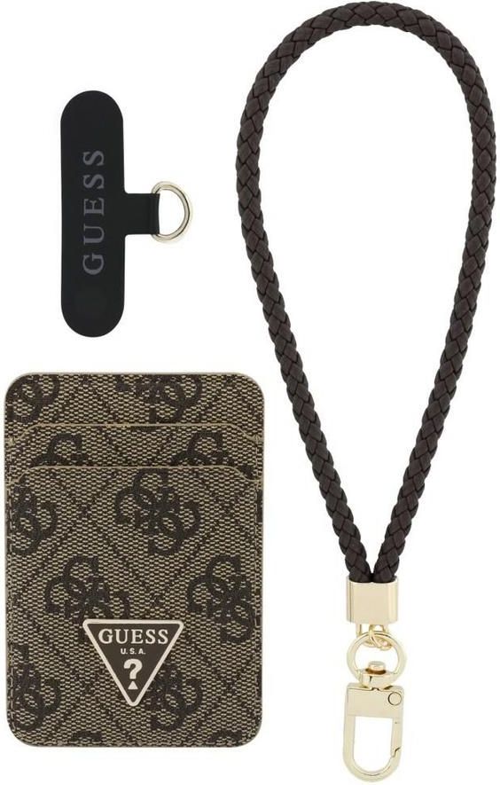 Zestaw portfel + hand strap Guess triangle MagSafe brązowy Mszana Dolna