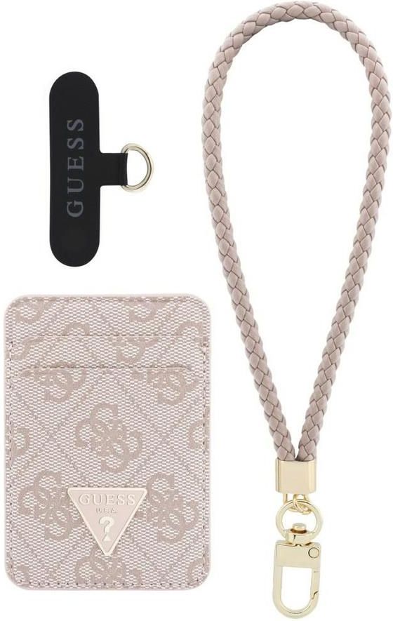 Zestaw portfel + hand strap Guess triangle MagSafe różowy Mszana Dolna