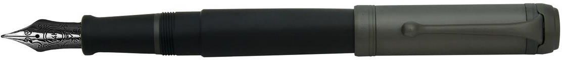 Pióro Aurora Talentum Full Metal Black W nowym piórze wiecznym Aurora Talentum skuwka i korpus zostały wykonane z czarnej satynowej żywicy. Mroczny wygląd pióra podkreślają klips i pierścienie wykonane ze szczotkowanego rutenu oraz czarna stalówka z 14-karatowego złota. Stalówka z litego złota jest uzupełniona o ebonitowy spływak, który zapewnia płynne i równomierne spływanie atramentu. Wymiary : waga ok. 31g długość pióra zamkniętego: 135mm długość całkowita ze skuwką: 159mm długość korpusu b/stalówki: 110mm długość korpusu ze stalówką: 132mm średnica ok. 13mm Czarne pióro wieczne Aurora Talentum posiada podwójny system napełniania : naboje lub konwerter Aurora (oba w zestawie). Wszystkie elementy pióra zostały wykonane ręcznie w manufakturze, we Włoszech.