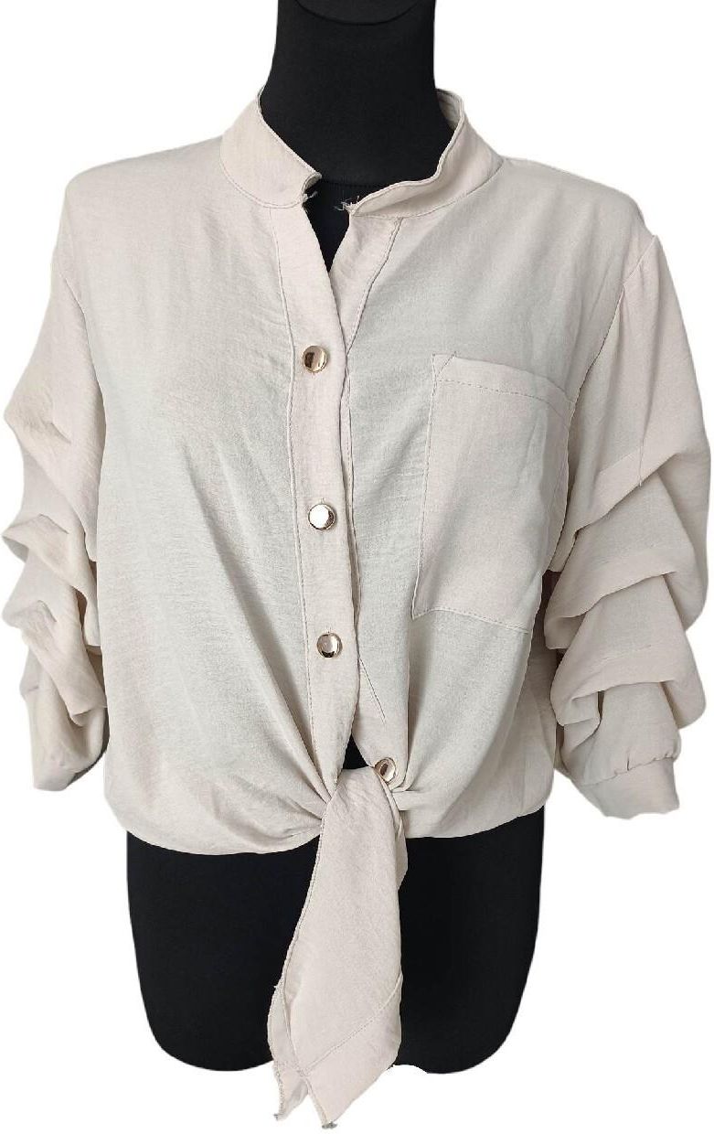 Beżowa Koszula damska z ozdobnym rękawem Mszczonów