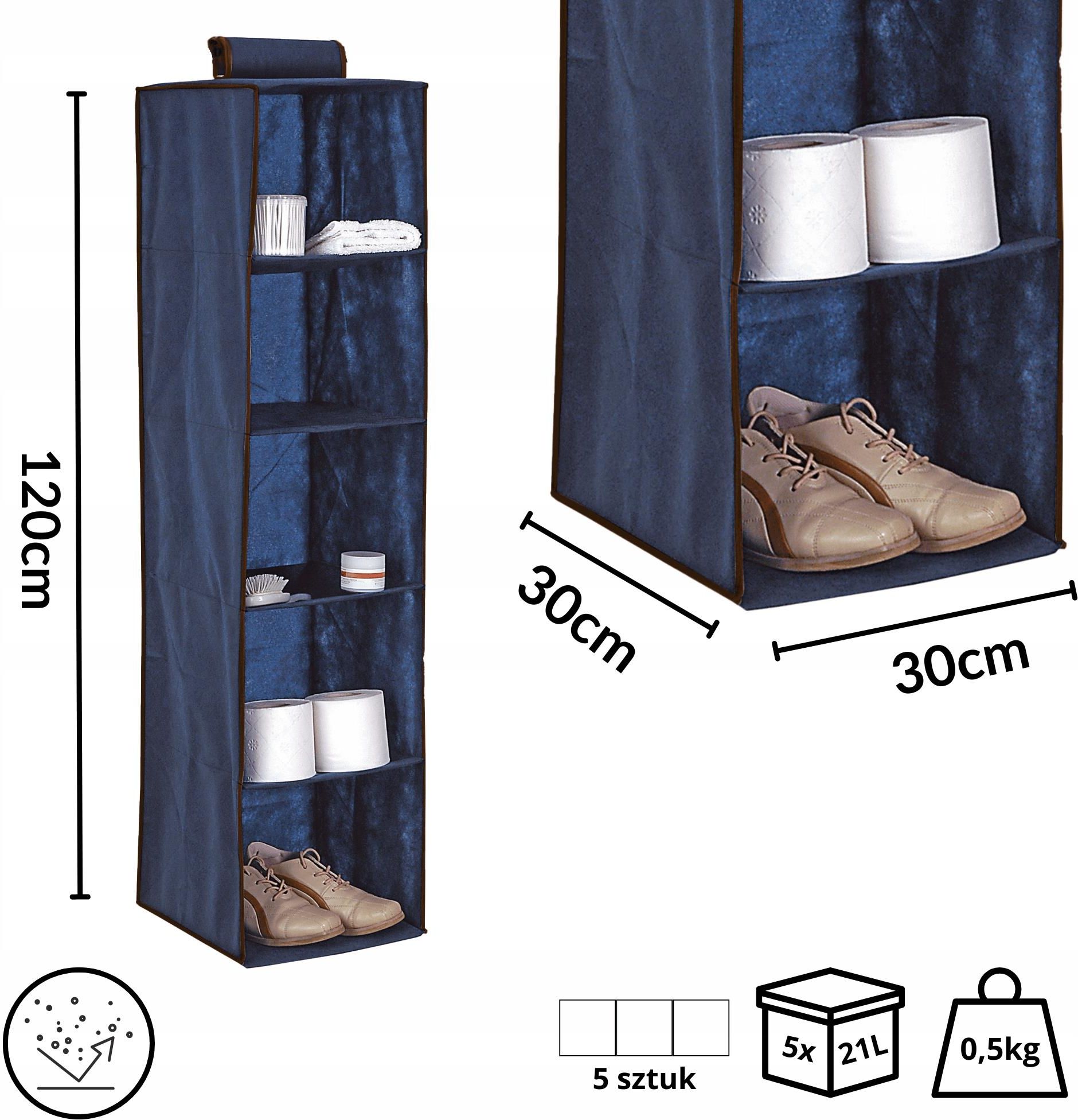 BLUE niebieski wiszący organizer do szafy 5 przegród 30X30X120cm Mszczonów
