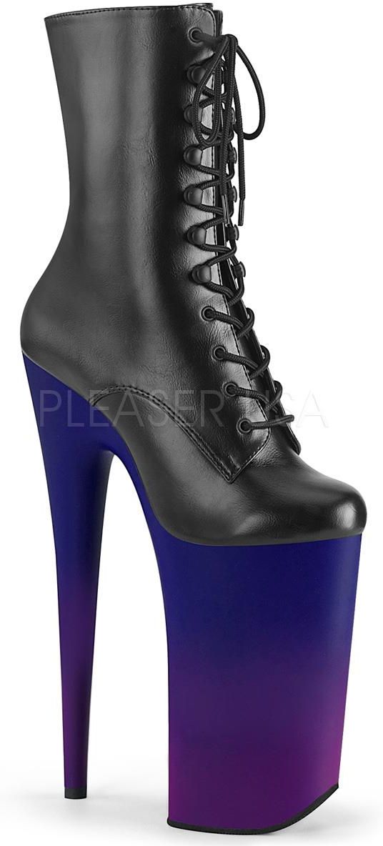 10 (255mm) Heel, 6 1/4 (160mm) Platform Lace-Up Ankle Boot Featuring Blue Purple Ombre Platform Bottom, Inside Zip Closure
